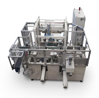 Automatic wrapping machine, double wrapping type, receiving the bags coming from the packaging machine and grouping them in a bundle to be wrapped by a small polyethylene band first and then packed with thermo-shrinking polyethylene. Max inlet speed: 100 bags per minute depending on the composition of the bundle