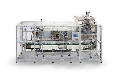 Máquina para cerrar paquetes con doble fondo cuadrado de productos a granel en posición vertical, equipada con un formato. La máquina está predispuesta para recibir paquetes con doble fondo cuadrado con soldadura superior parcial (para la salida del aire en las fases sucesivas) formados y llenados por una envasadora vertical. Max velocidad mecánica: 120 paquetes al minuto