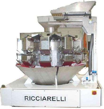 Peseuse associative dotée de 10 unités de pesage, commandée par des moteurs pas à pas. Disponible en version standard et acier inoxydable Vitesse mécanique maximale: 70 pesées à la minute