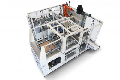 Incartonatrice automatica per confezioni a cuscino, fondo quadro e doppio fondo quadro disposte in piedi o in coricato in scatole preformate da fustellato con successiva chiusura superiore con coperchiatrice o altre soluzioni.